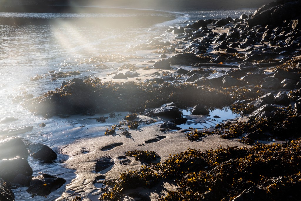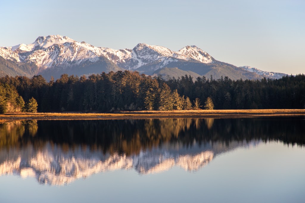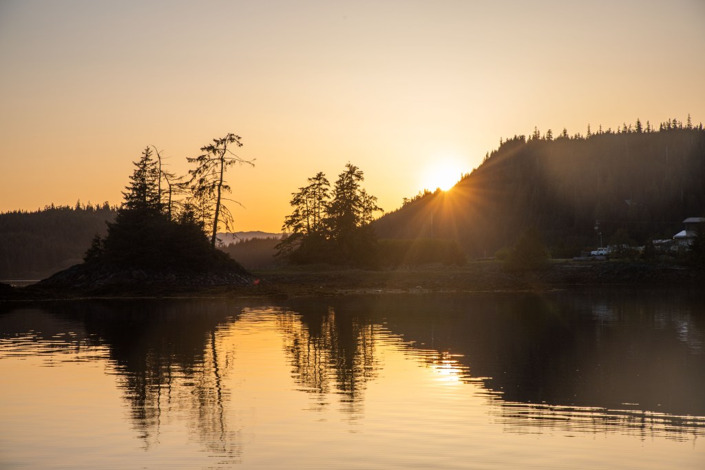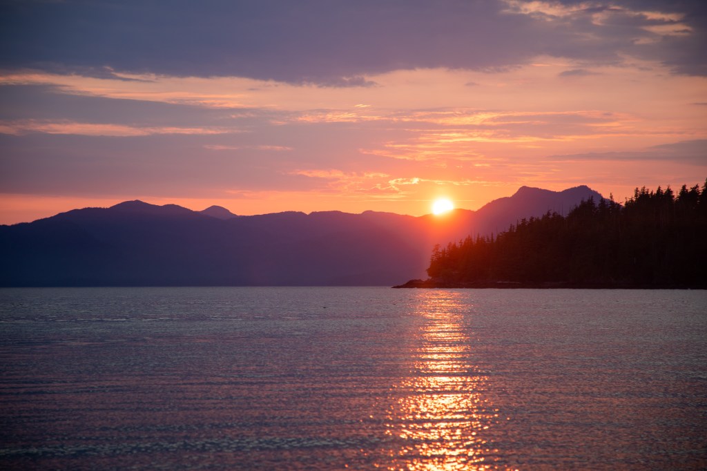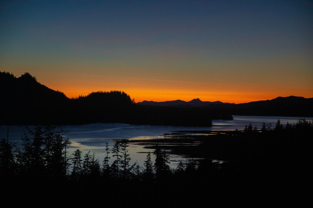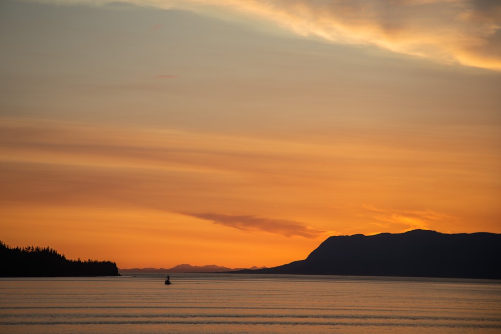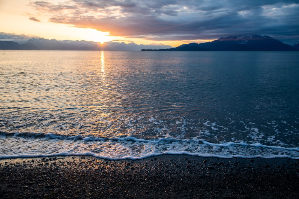 On the edge of Berners Bay, bare feet nestled in the white and black sand that shimmered with flecks of gold, I sat and watched this sunset. Gulls cried mournfully. A seal slipped smoothly up, shining head breaking the surface of the water for a moment, before dipping down again with barely a ripple in its wake. The rays softly slanted lower and lower across the Chugach Mountains in the distance, ethereal and golden, and the movement of the waves along the shore was the gentlest whisper of a song.