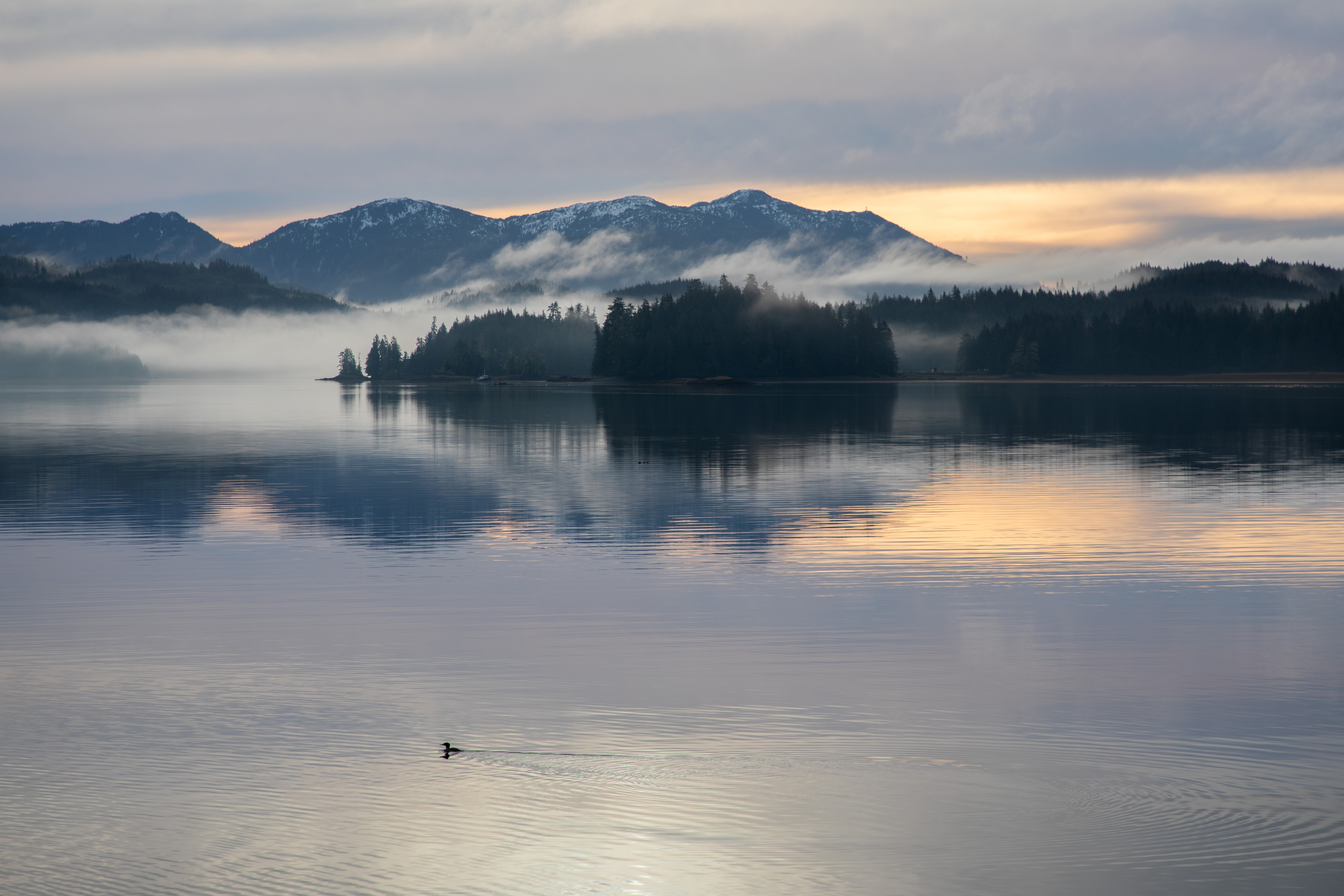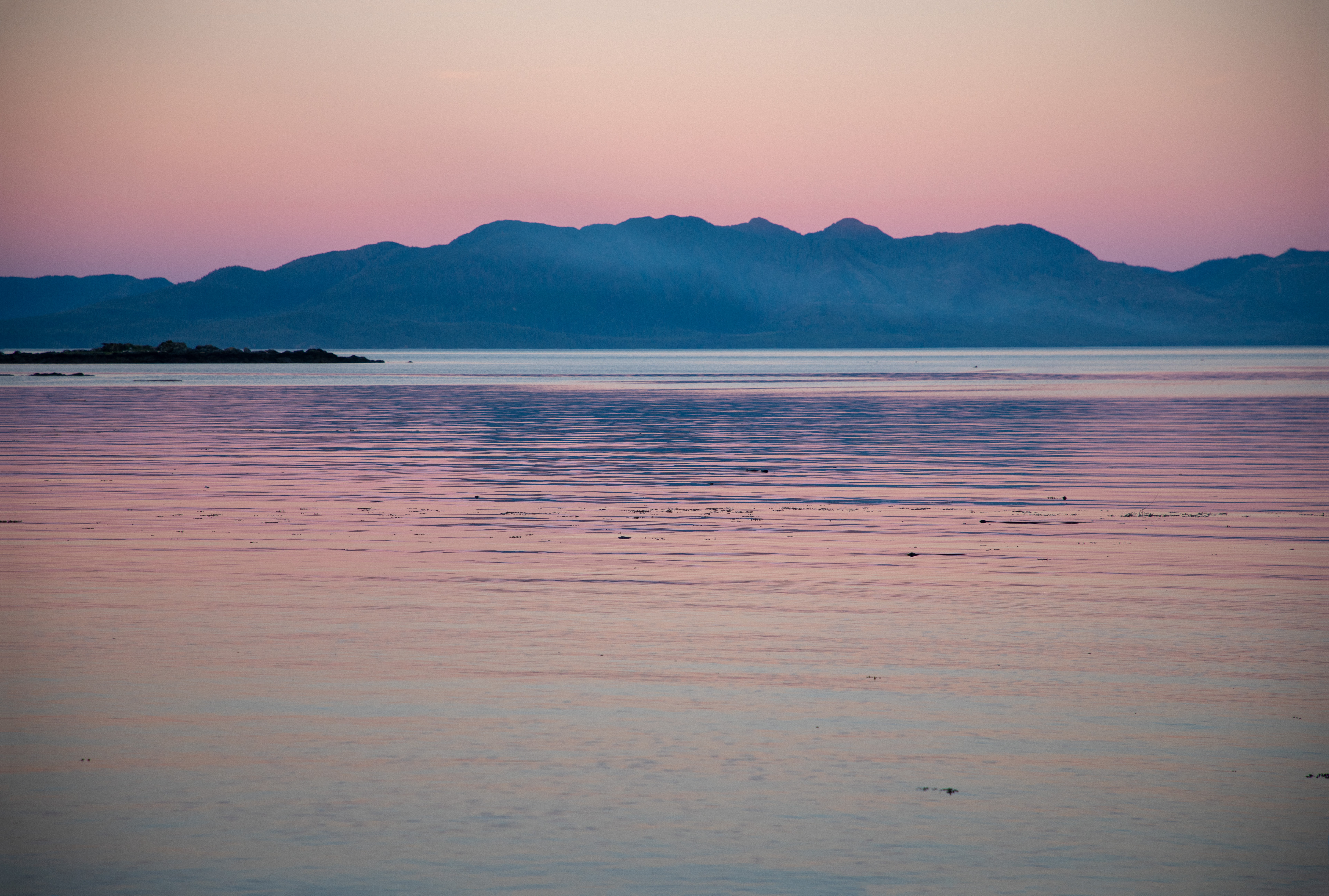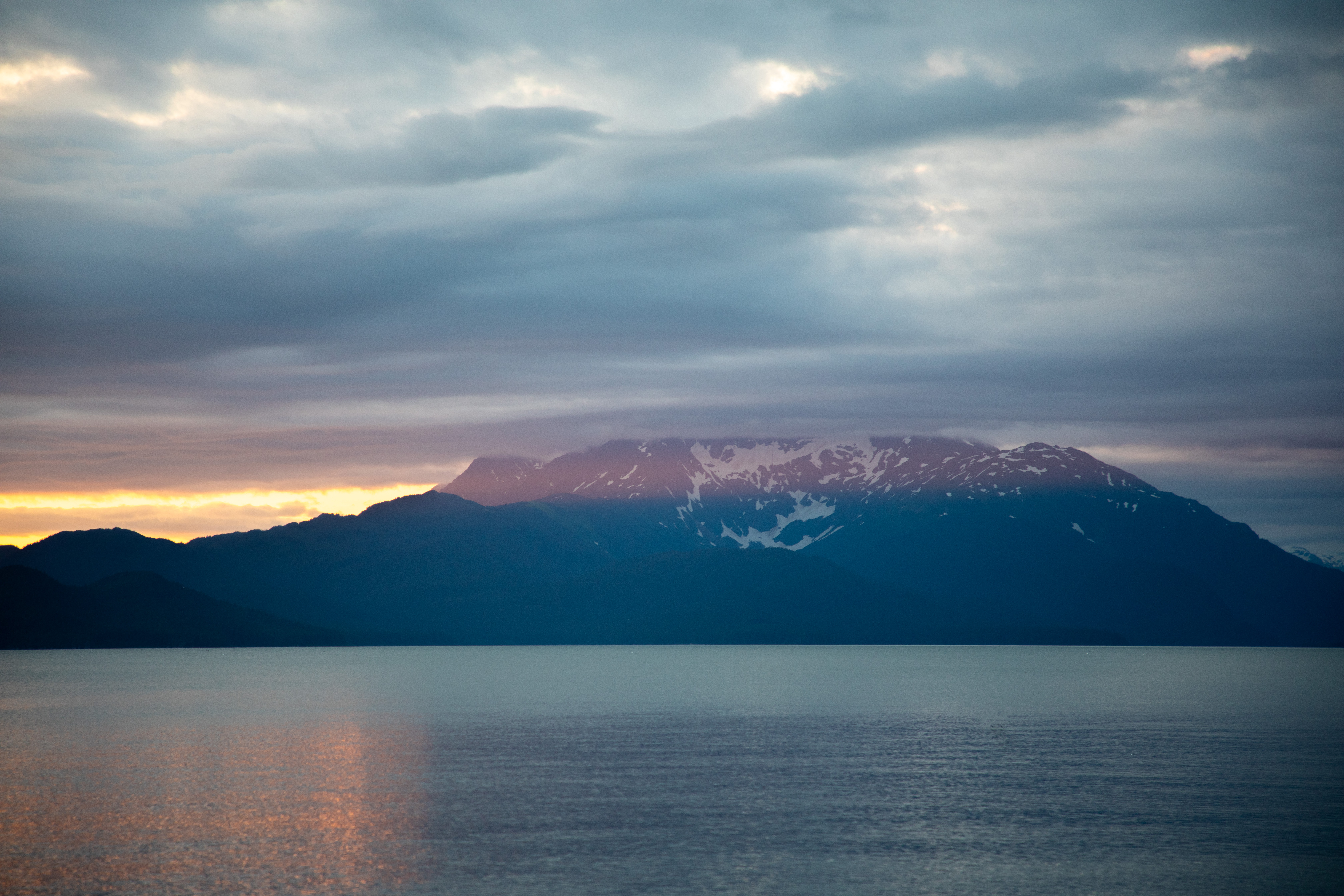 On the edge of Berners Bay, bare feet nestled in the white and black sand that shimmered with flecks of gold, I sat and watched this sunset. Gulls cried mournfully. A seal slipped smoothly up, shining head breaking the surface of the water for a moment, before dipping down again with barely a ripple in its wake. The rays softly slanted lower and lower across the Chugach Mountains in the distance, ethereal and golden, and the movement of the waves along the shore was the gentlest whisper of a song.