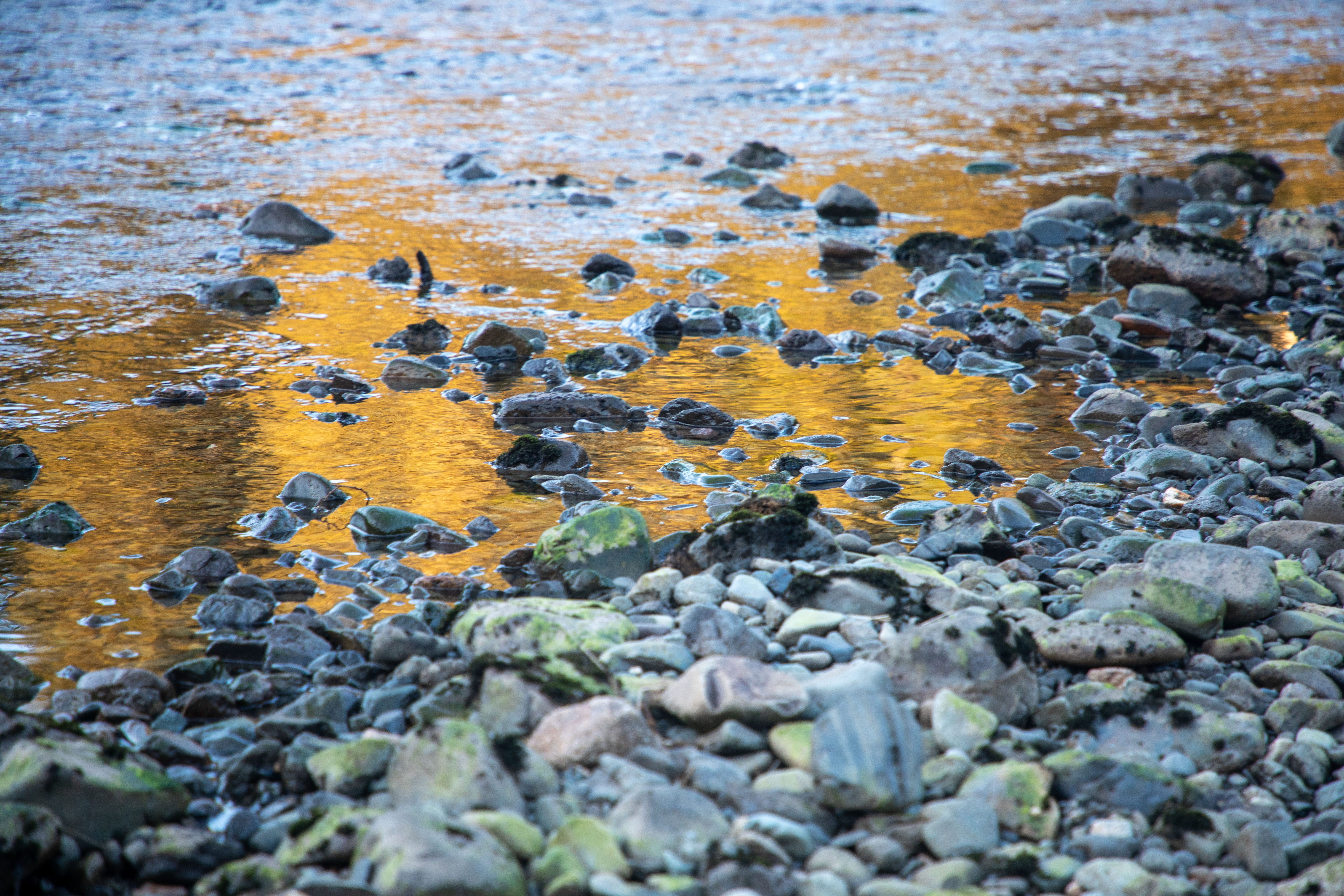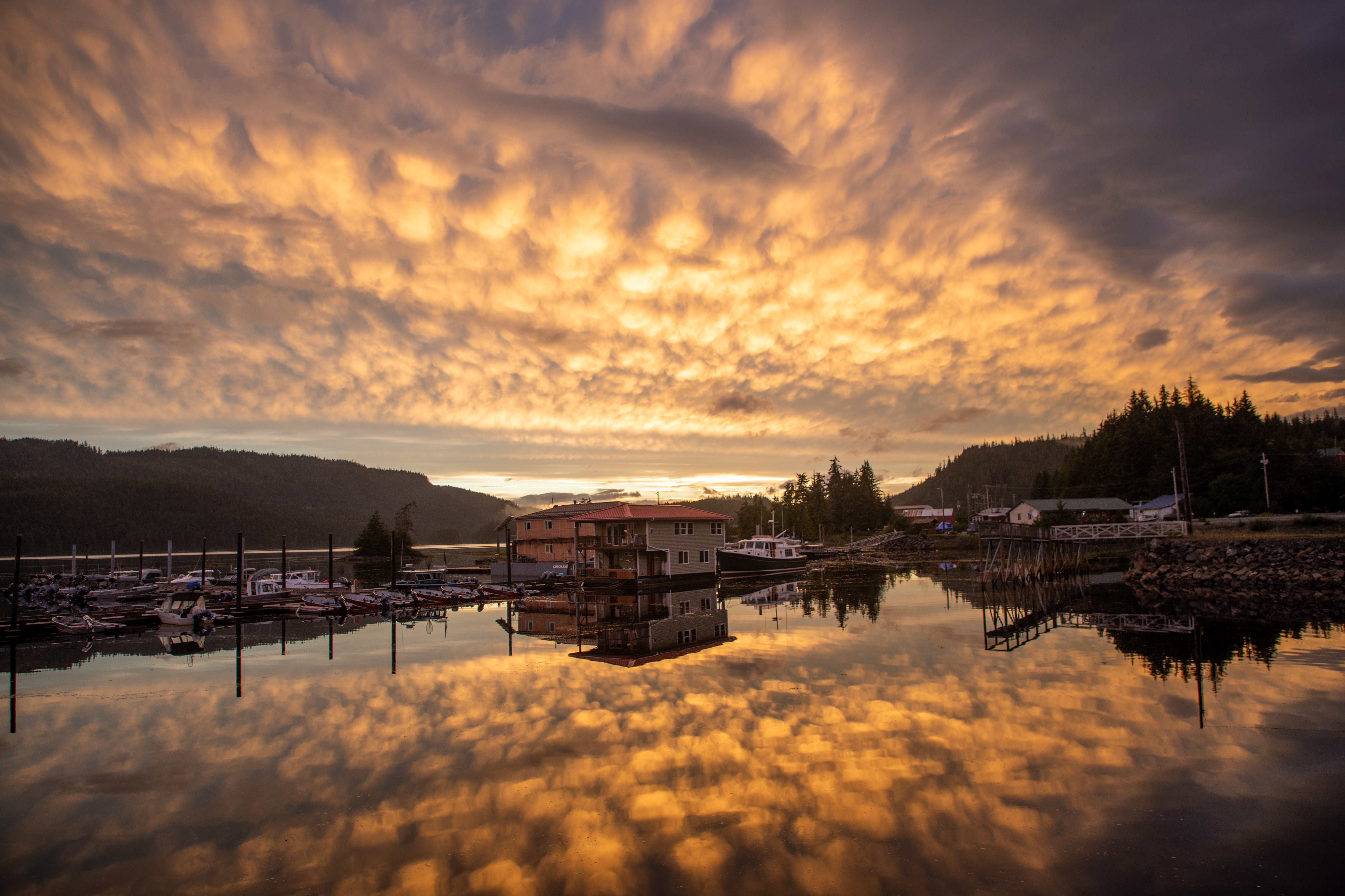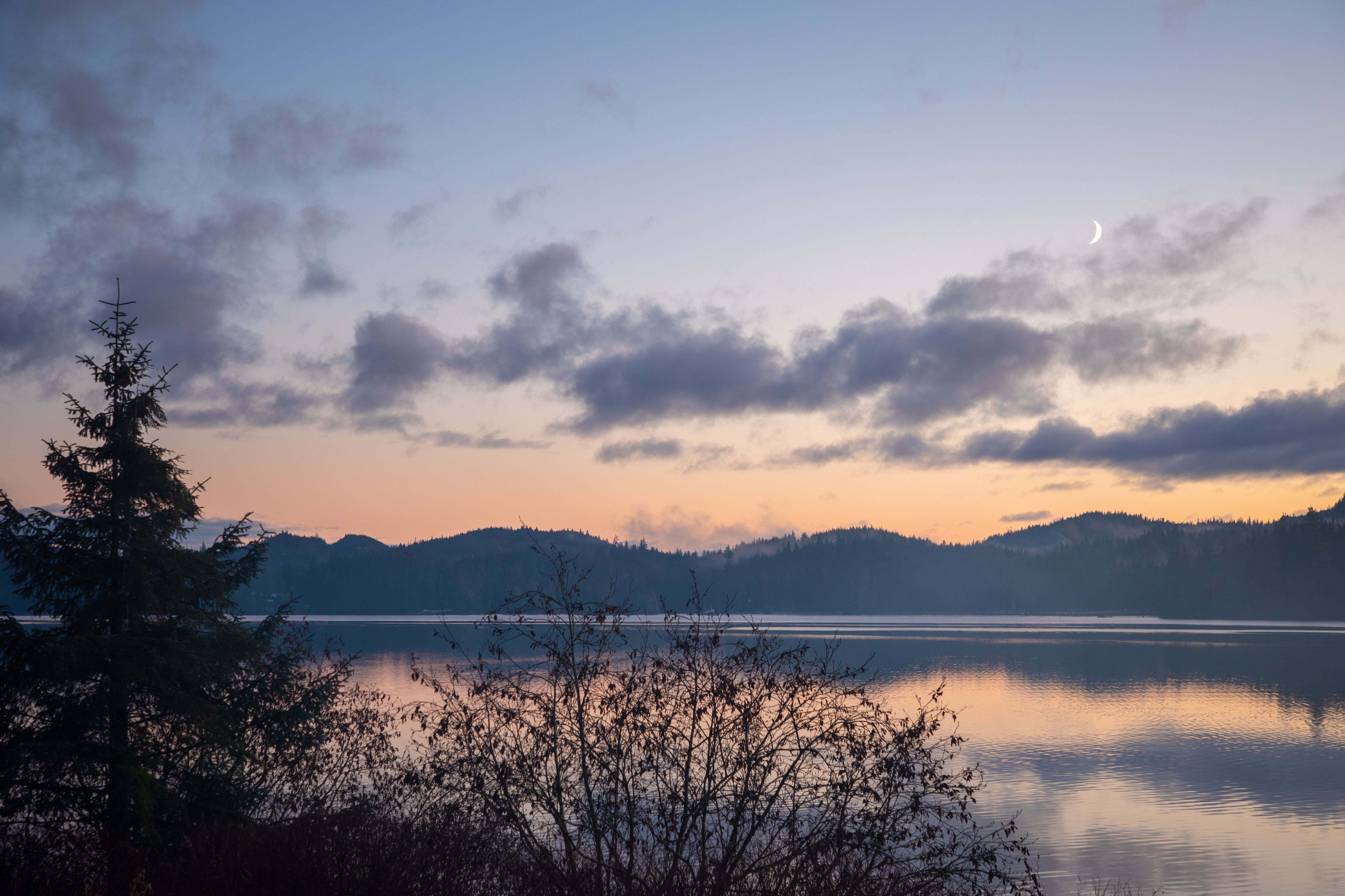 On the edge of Berners Bay, bare feet nestled in the white and black sand that shimmered with flecks of gold, I sat and watched this sunset. Gulls cried mournfully. A seal slipped smoothly up, shining head breaking the surface of the water for a moment, before dipping down again with barely a ripple in its wake. The rays softly slanted lower and lower across the Chugach Mountains in the distance, ethereal and golden, and the movement of the waves along the shore was the gentlest whisper of a song.