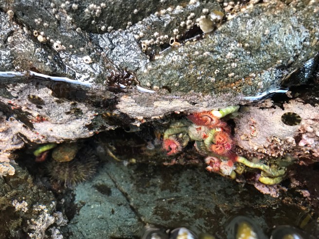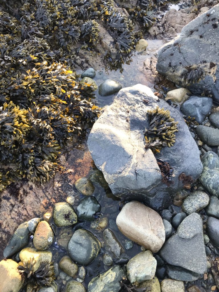 Sometimes they’re the kind of treasures you tuck in your pocket, sometimes they’re the kind of treasures you tuck away in your camera…and sometimes they’re the kind of treasures that don’t fit in your pocket or make it into your camera. You’ll have to use your imagination to add the slap of the waves against the rocks, the distant echoes of children’s laughter and the warmth of the sun on skin. Insert a furry creature (mink? fisher?) too quick for my camera and an otter making ripples in the sea too far out for my lens to capture. Slow it all down to the speed of picking your way delicately along the uneven surface of rocky crustacean and seaweed covered tidal zones, each step a test and an experiment.