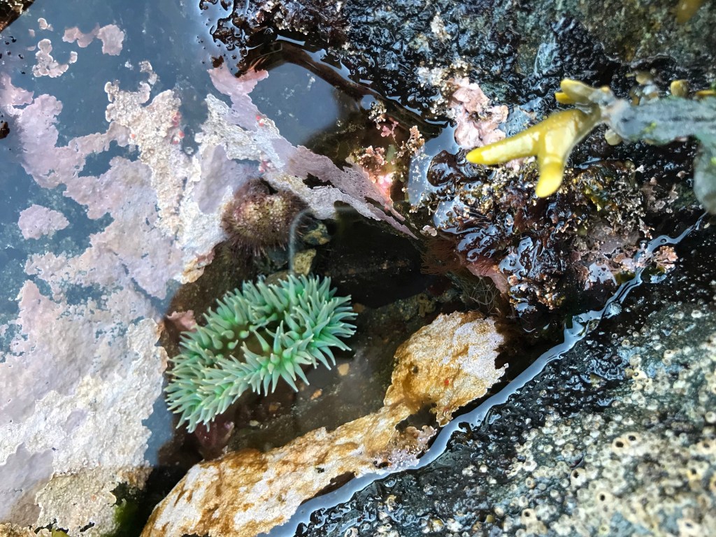 There were some really beautiful and unique rocks at this beach, including marble. We also saw sea lions, sea otters and seals in the distance, and found the beautiful sea anemone pictured below. Our little camping shelter was situated perfectly to watch the sun set—what a treat to have nothing on our agenda but to sit there and watch it go down. We savored the beauty and silence of this place so much, and we only wished we had brought enough water and food to stay longer!