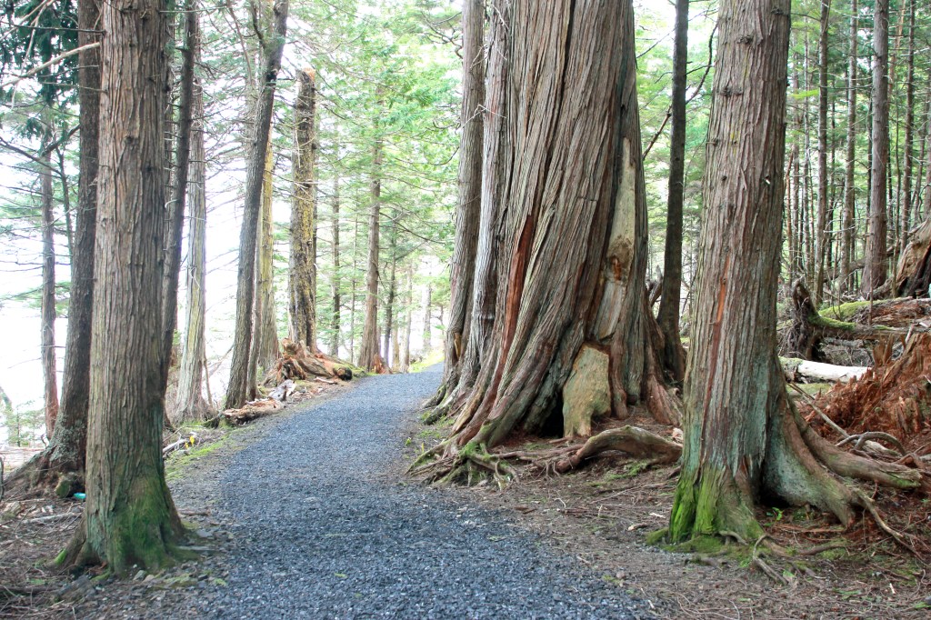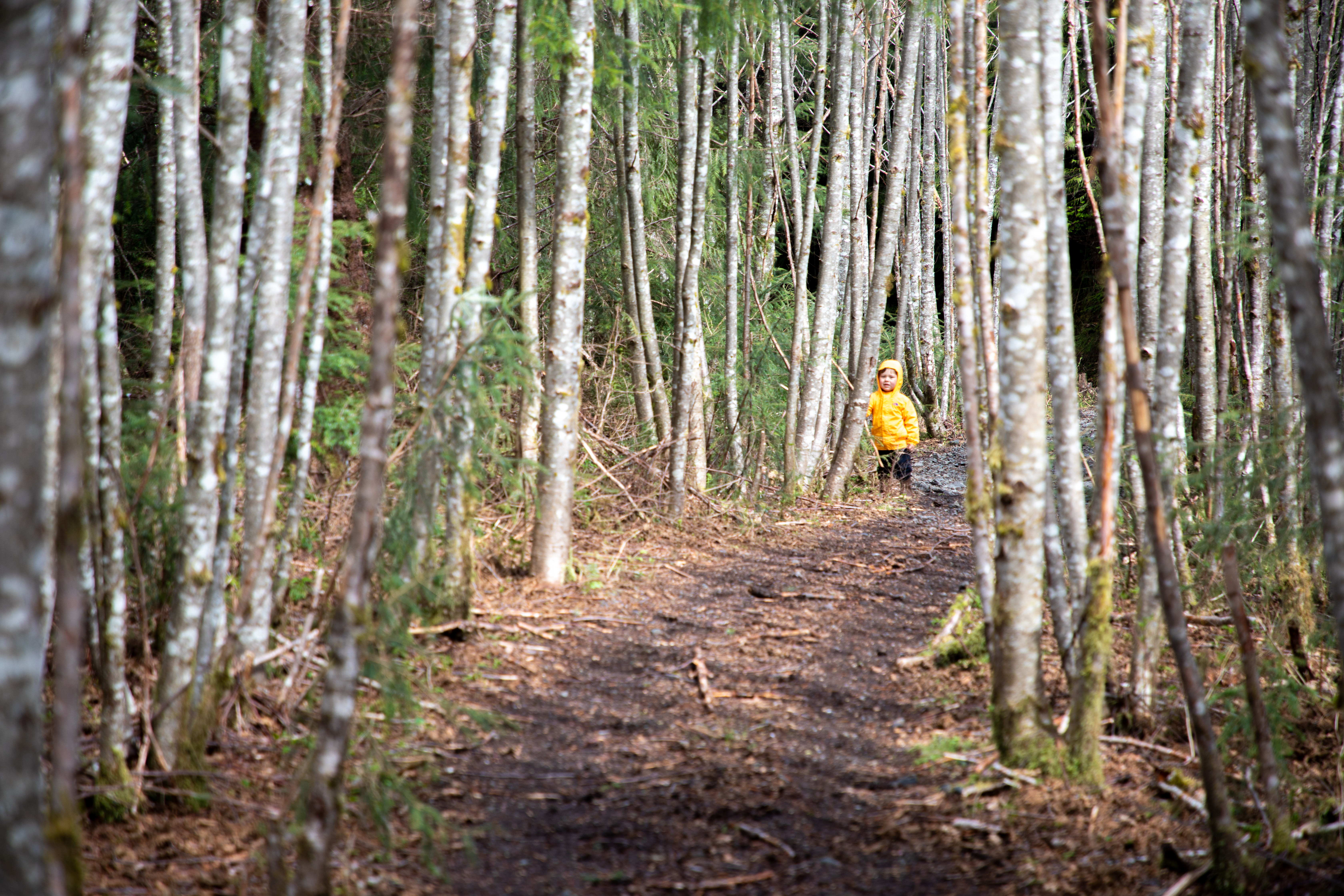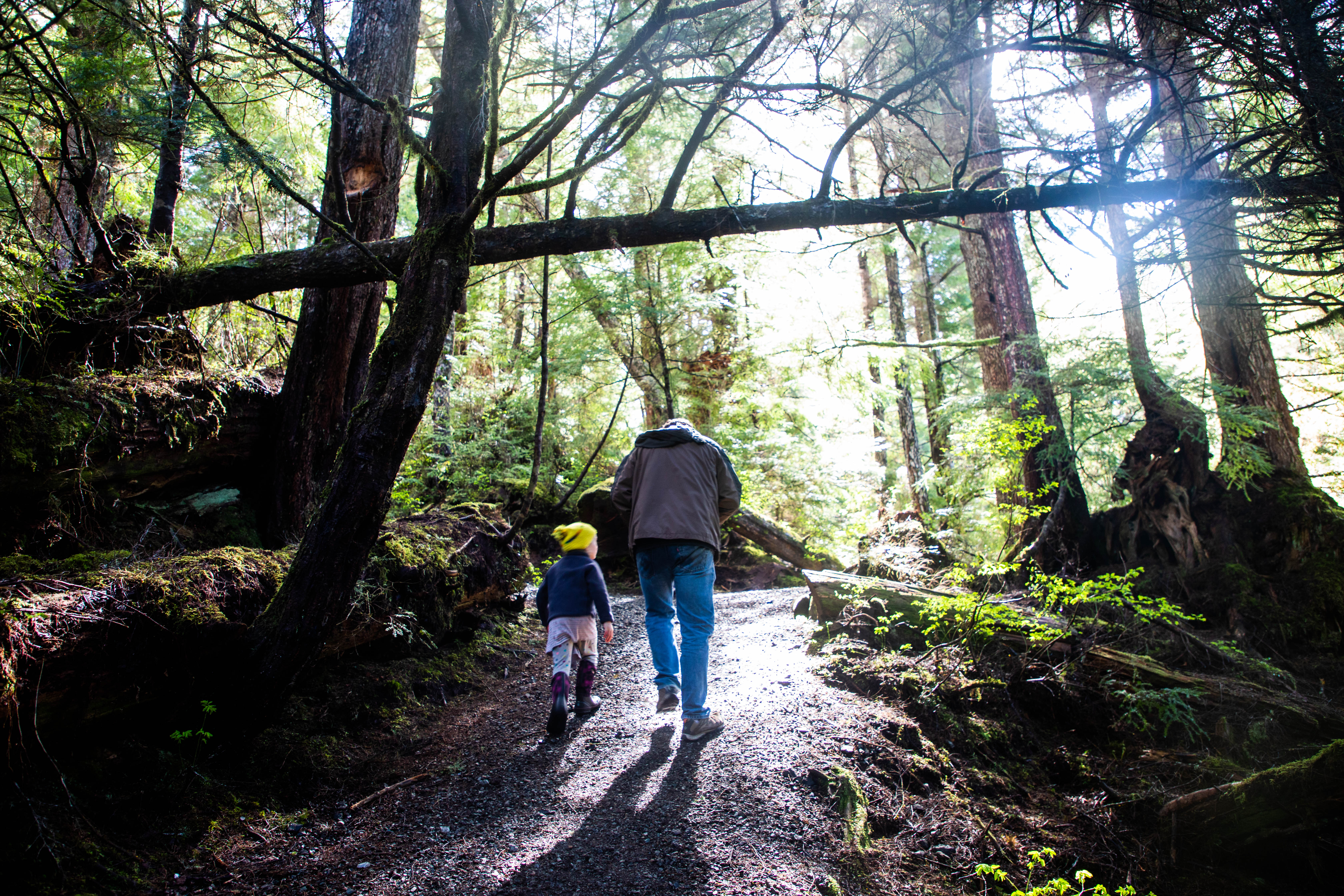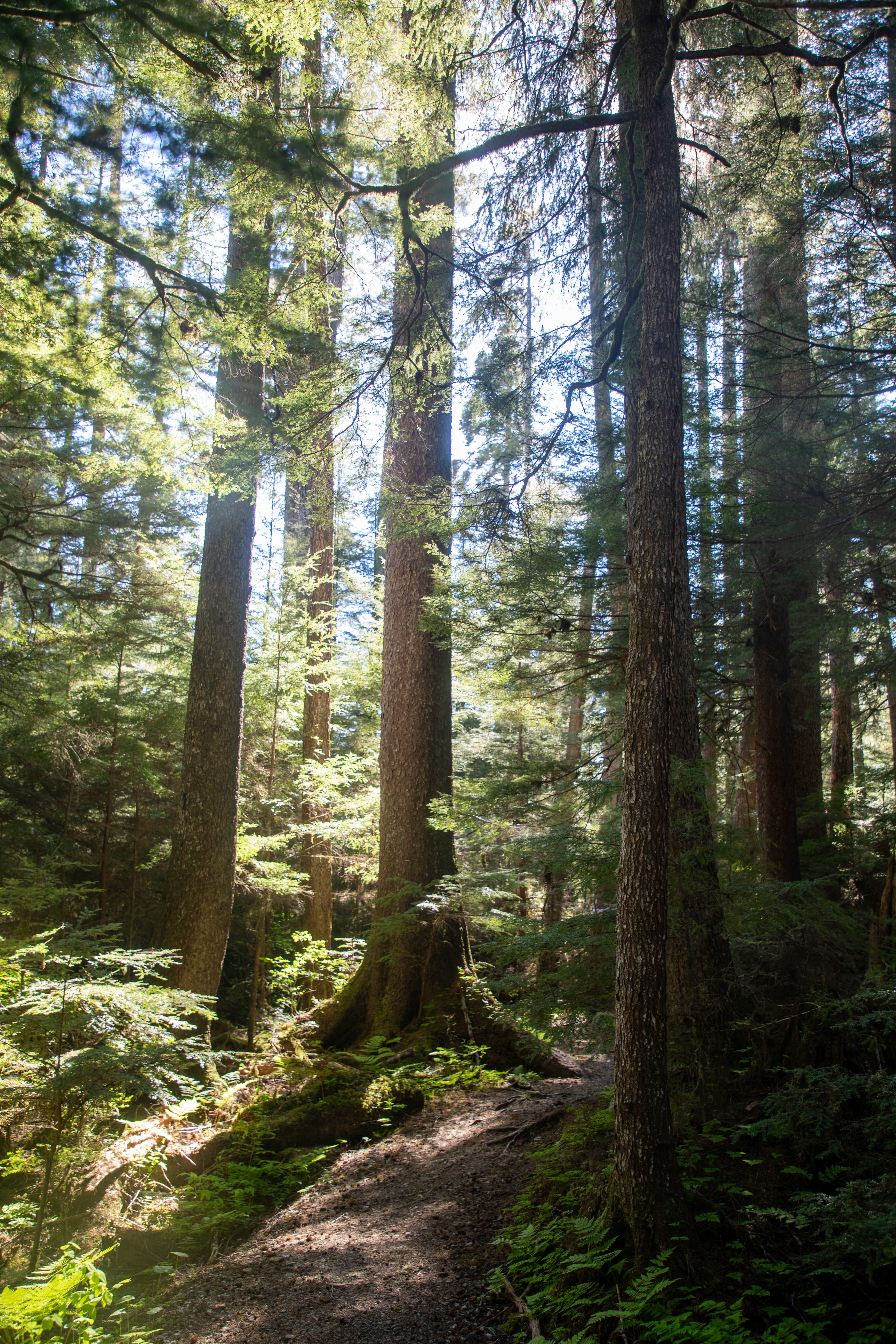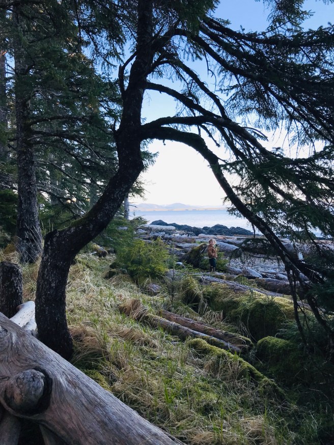 It’s hard to accurately depict scale in photos sometimes, but the first shot below of Zach walking on the beach gives you some idea of the size of the old growth forest that surrounded us. These were BIG trees, and the forest floor beneath them was the loveliest place to walk.