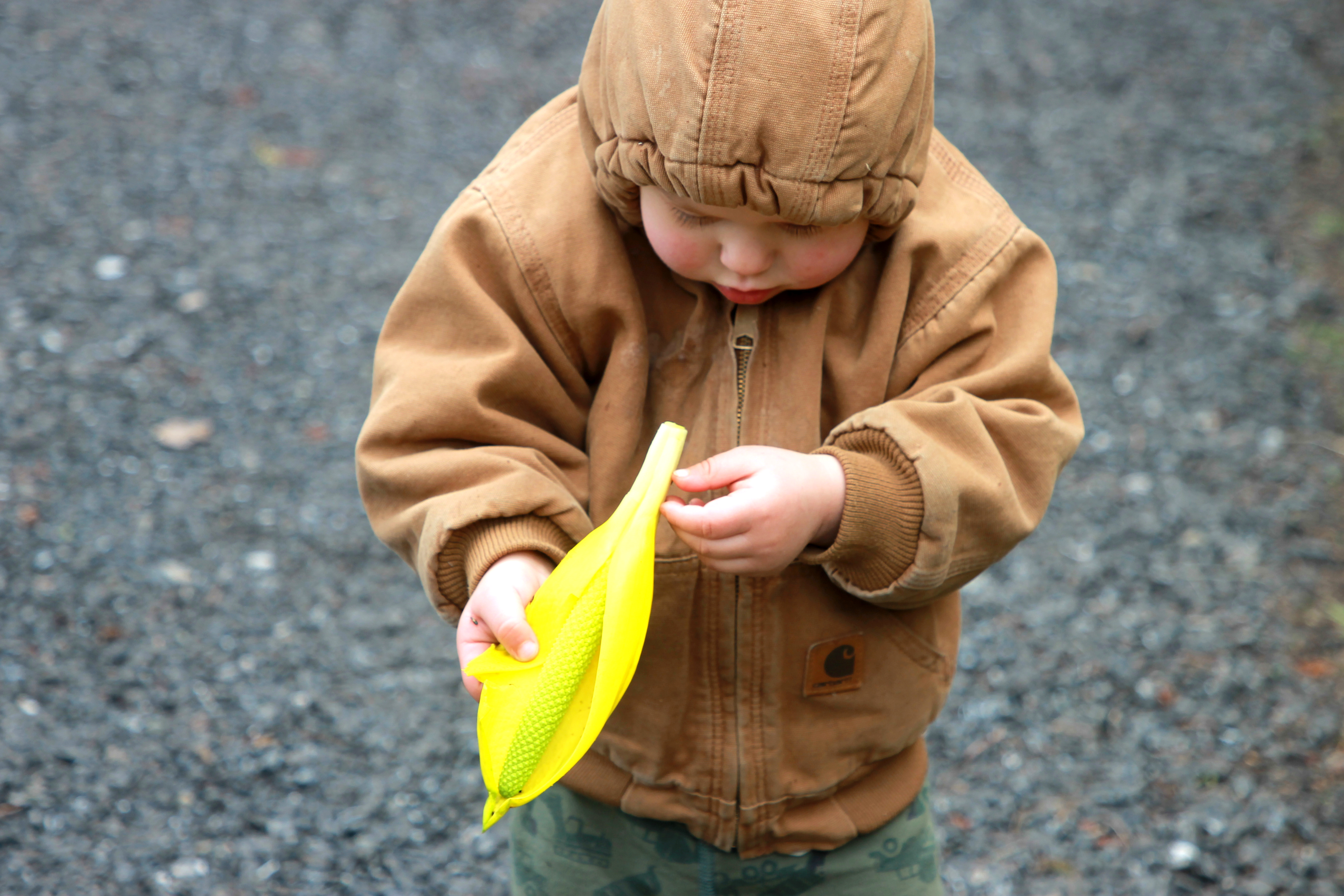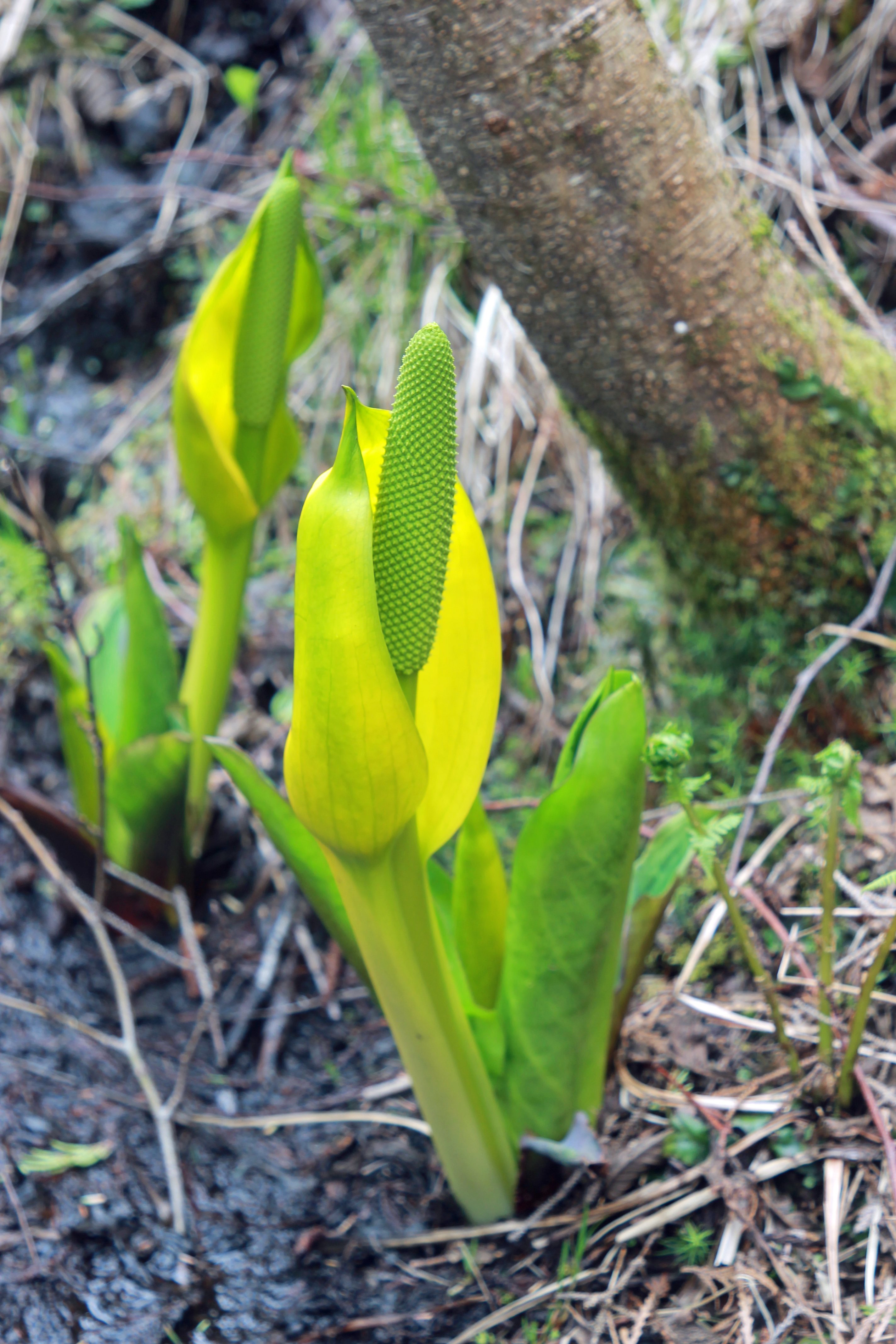 The skunk cabbage blossoms are a startlingly showy yellow flower, that remind of me of giant calla lilies. They are the bright splashes of spring yellow to the boggy ditches here that the marsh marigolds are in Minnesota. They do, indeed, have a fragrance reminiscent of skunks, but thankfully fainter. My two-year-old son was mostly fascinated by the fact that there are little bugs inside the flowers.