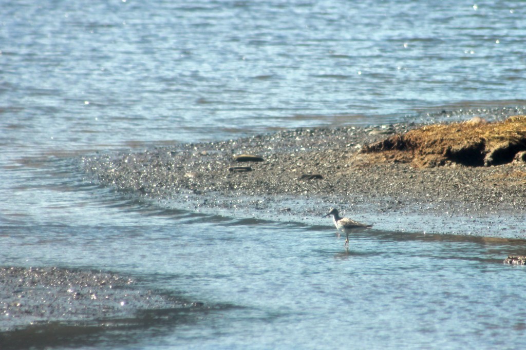 Along the way, we were thrilled to see and hear sandhill cranes (too fast for my camera), and not thrilled (but also not surprised) to find fresh bear tracks in the mud. I spotted a new-to-me variety of shorebirds, pictured below. Two of our party nearly lost a boot in the muddy tidal flats, so that was a new lesson learned about the ocean.