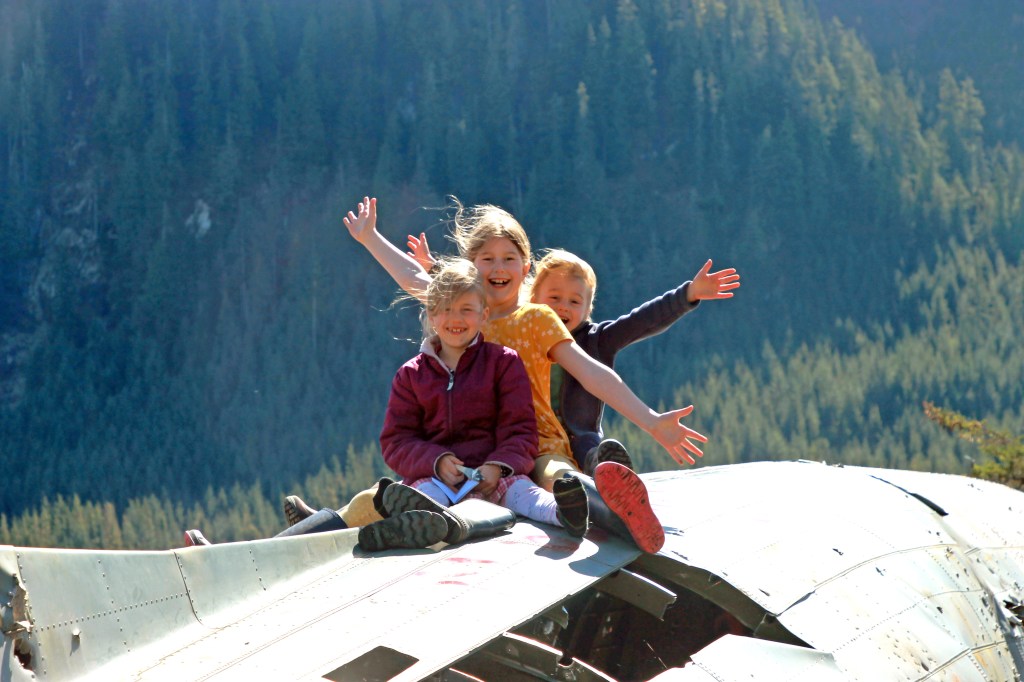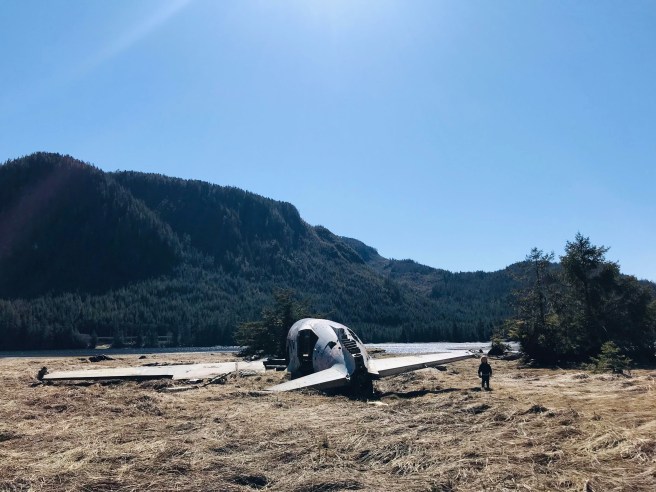 We followed the shoreline of the inlet out to where a World War II-era EC-47 airplane had to make an emergency crash landing in 1968 due to engine failure. The landing was successful enough that all four passengers survived, and the plane didn’t burn up, leaving us with a little piece of history in an unlikely place. Fifty-four years later, it’s a bit more worse for the wear, but it makes for a great place to take a snack break on an improvised plane wing picnic table. The kids had a blast climbing around on it, and little Jonathan cried when it was time to go and kept calling, “Bye, hair-plane!” for a long time after we left.