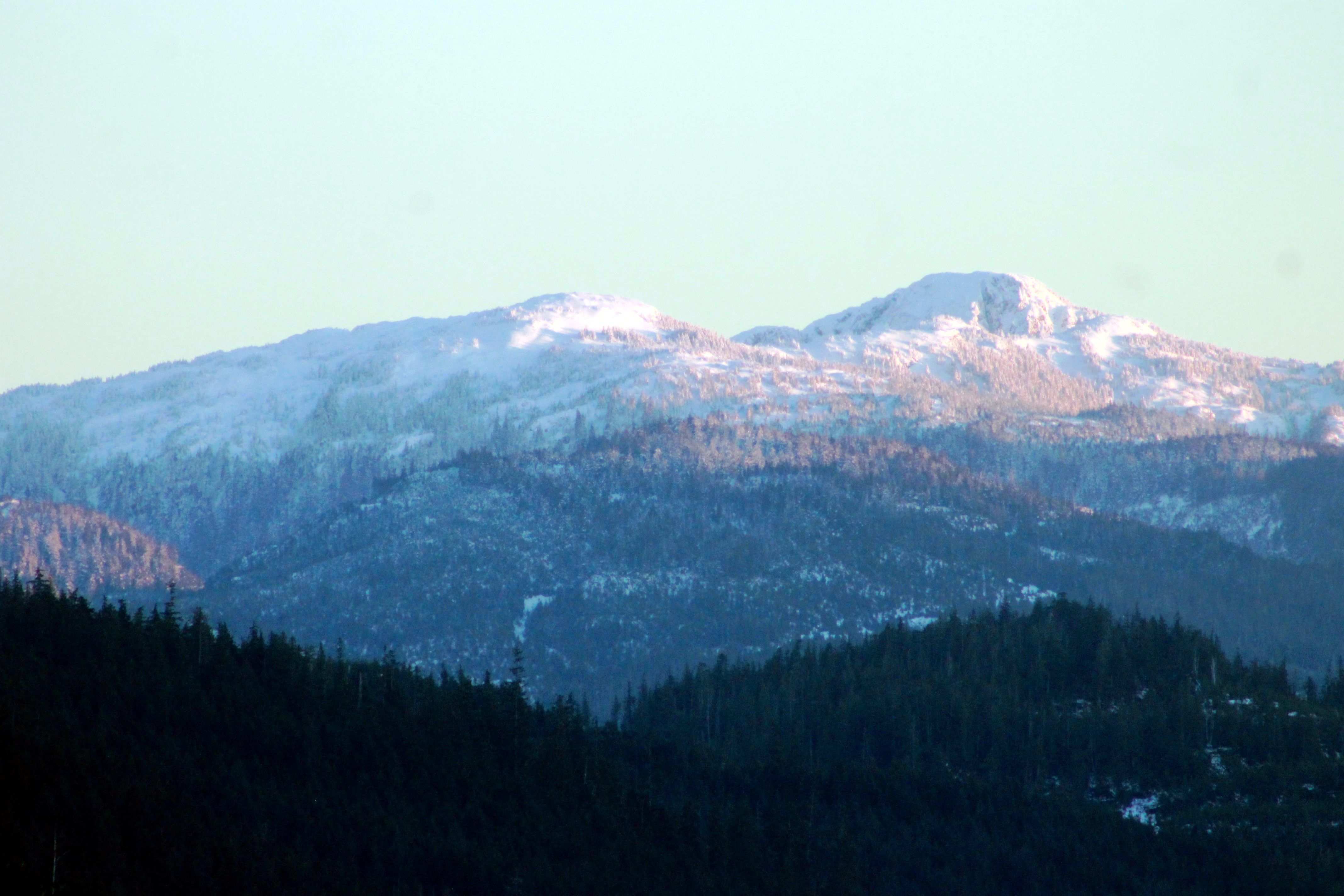 About the photos: Most of our snow at the lower elevations has disappeared—and finally some of the back roads and trails are accessible again! I was so excited about this and the beautiful sunny weather that I hiked two trails this week. You can see part of the town of Thorne Bay in the first overlook photo, and a bird’s eye view of the town of Craig on the other side of the island in the last photo. I was literally looking down at soaring eagles here. Also pictured, a couple of the highest peaks on Prince of Wales where there’s snow year-round!
