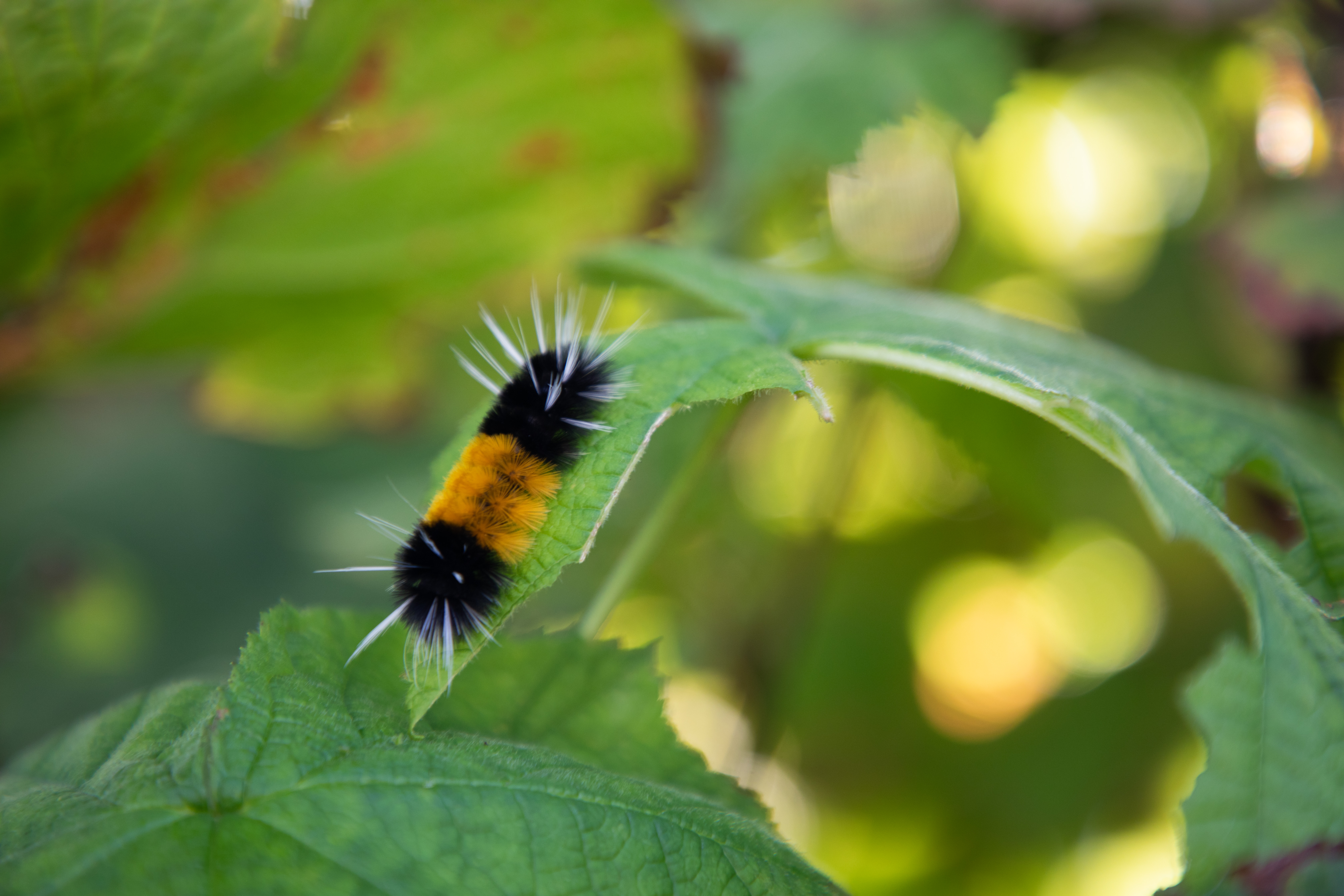 One of my daughters adopted three(!) fuzzy caterpillars, named them, and faithfully fed them fresh leaves for several days before they escaped one too many times in the house and it was decided to return them to the wild. Pictured above is Fuzzy, living his dream life eating thimbleberry salad for lunch.