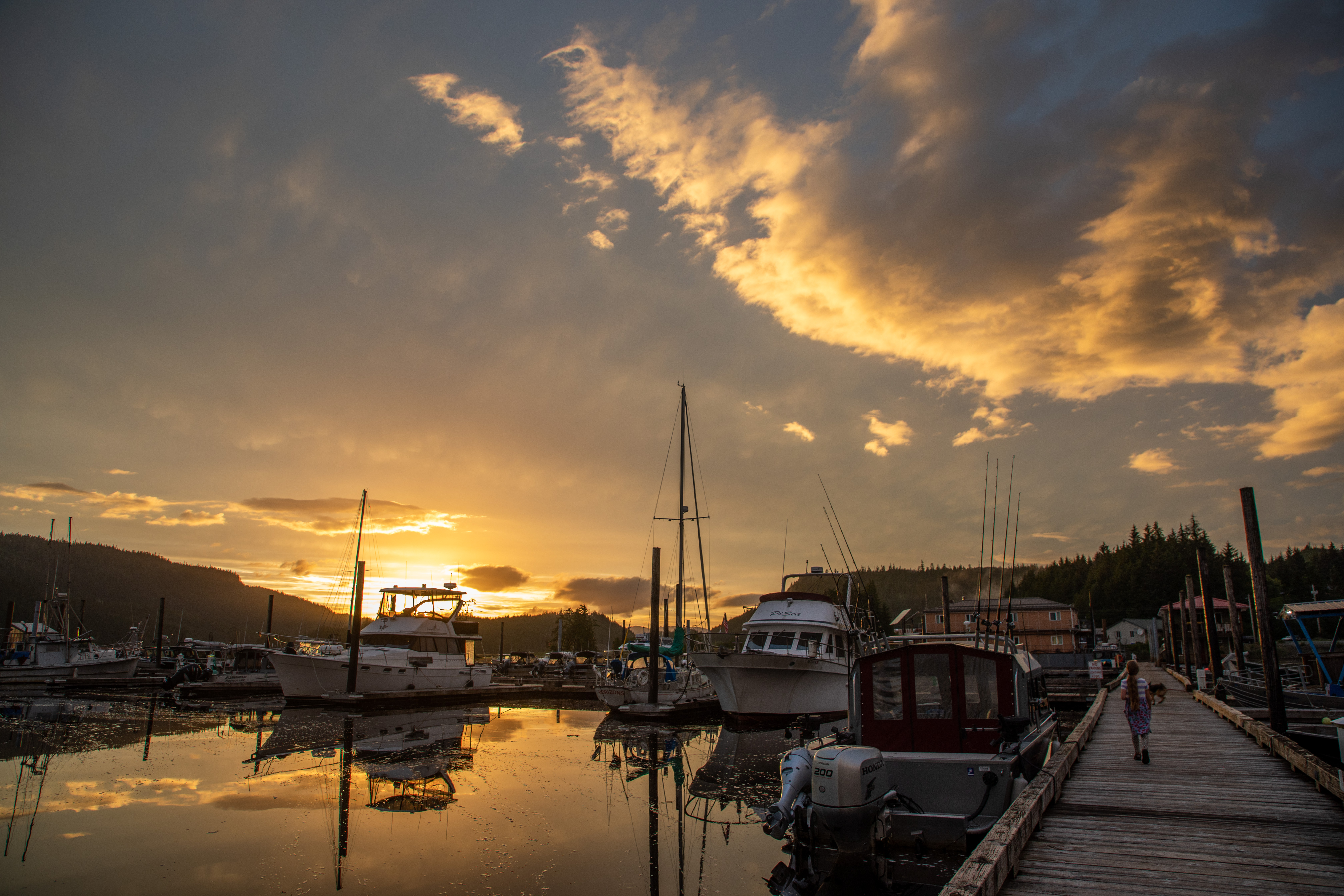 It was a bit choppier than we expected, so we couldn’t get out to Tim’s favorite halibut spot, and I had to work intentionally to ward off seasickness. But I loved getting to see the mouth of the bay for the first time. Thorne Bay is long and narrow, and curves around before it opens up into Clarence Strait, so even though I’ve been out on it in a kayak or a friend’s skiff a few times, I had never been quite far enough to see the big water around the corner. It was beautiful to see how the mountains met the sea out there, and the way the waves crashed on the rocks. I learned how to bait a double hook with herring for halibut, an entirely different technique from the egg bait I’d learned to tie on for salmon earlier in the week. We cheered when someone landed a flounder and laughed when our lines got tangled in the flurry of pulling it in. I thought I caught a mega halibut, only to discover with great disappointment that I’d merely caught “the whole world” (aka, the very much immovable bottom of the sea). Back at the docks, I recovered from a light case of sea legs, then took Susanna’s cod home to become fish tacos for supper.