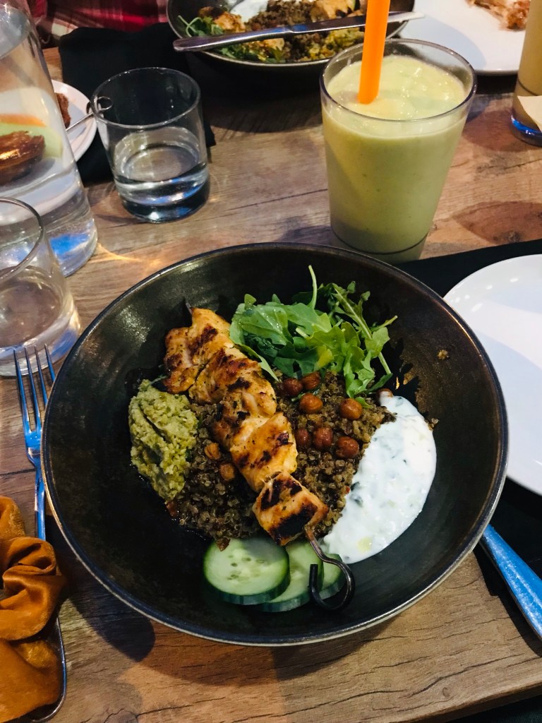 I enjoyed experiencing new food. Shopping an ultra-gourmet convenience store at 1 AM in the morning and walking out with pot de creme and pita with tzaziki. A build-your-own doughnut shop. Visiting a patisserie for bites of the most wonderful mont blanc (see the first photo below if you, like me, had never heard of that before) with a real maple syrup and cinnamon latte. North Carolina roadside stand delicacies like apple cider slushies and apple pie ice cream sandwiched between slightly warm snickerdoodle cookies. A birthday dinner on a patio one lovely fall evening, featuring a Mediterranean quinoa bowl with grilled chicken, olive tapanede and crispy chickpeas, and a surprisingly good green smoothie. An almond croissant. An excellent bowl of seafood chowder, properly heavy on the seafood. Cute little bags of airplane pretzels on repeat (okay, so that was sarcastic).