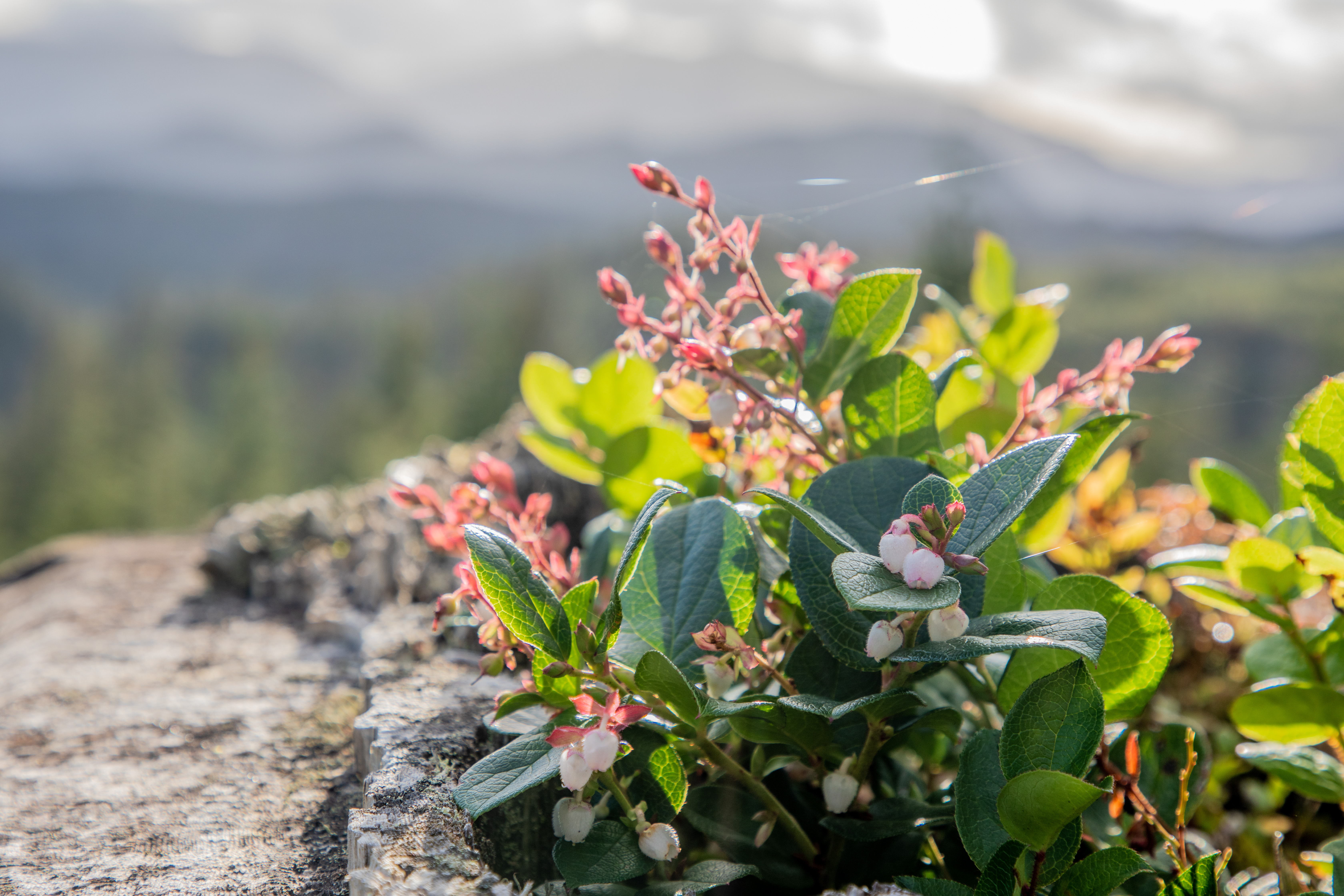 Found during a family hike along an unnamed road, this was my first sighting of salal berries. Oddly, on this day in late October, we found blossoms, too. I did not know what they were at the time (and Google doesn’t work in the wilderness), so I left them there, but later, my friend Juliet identified them for me and confirmed that they are, indeed, edible, with the flavor being described as somewhere between a blueberry and a grape.