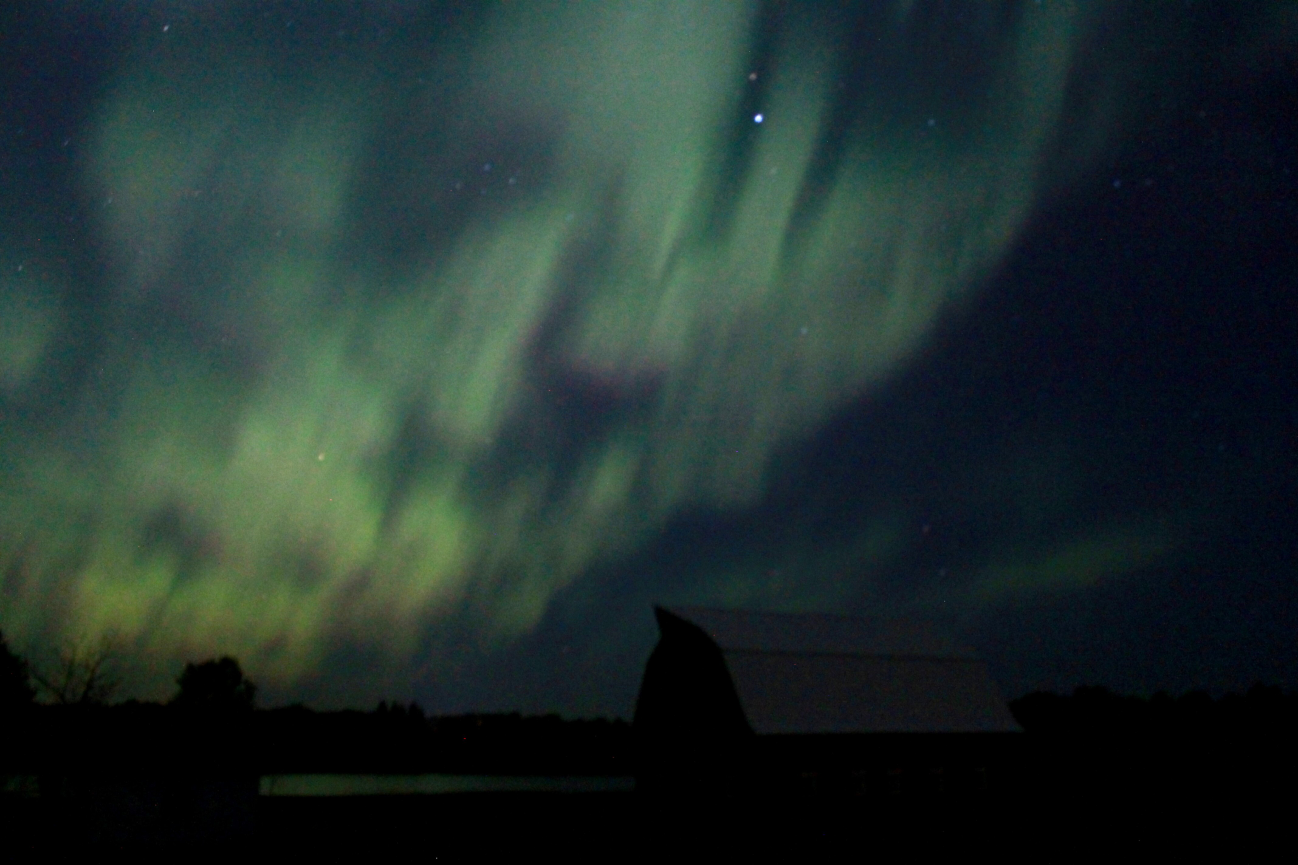 northern lights / rejoicing hillsnorthern lights and the moon / rejoicing hillsOn the evening of the 22nd, moving into the wee hours of the 23rd, we stood outside, oblivious to the mosquitoes (and believe me, it takes some pretty incredible distraction to make that possible right now), and watched one of the most spectacular displays of northern lights we’ve ever seen.  They were everywhere, around and above us, even into the south, dancing and pulsating and rippling across the diamond-studded velvet of the night sky in glowing whites and greens.  We were in awe.