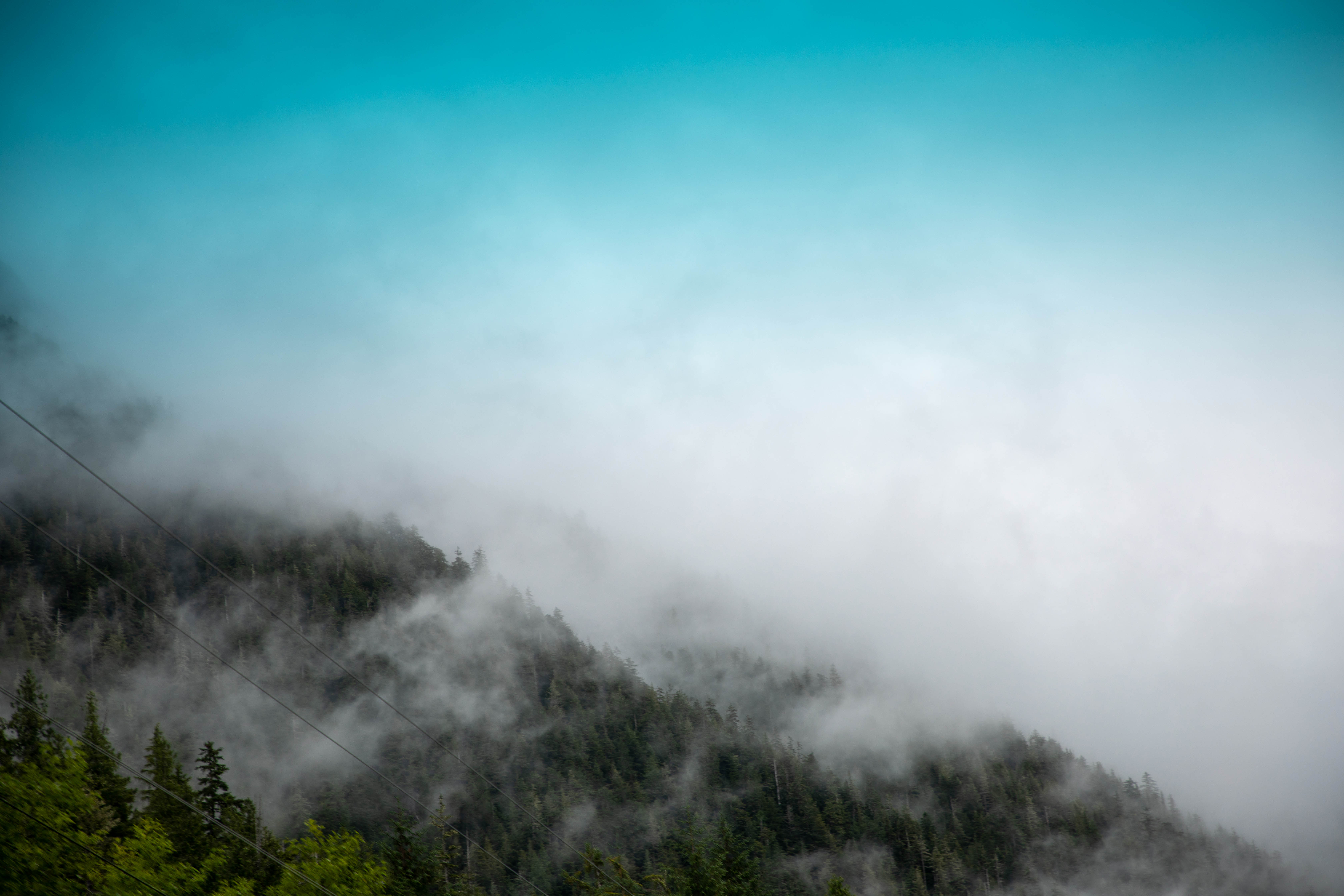 It was a misty, rainy day, and our first view of the island was that of dark pine-covered mountains, the extent of their height hidden by a heavy blanket of fog.