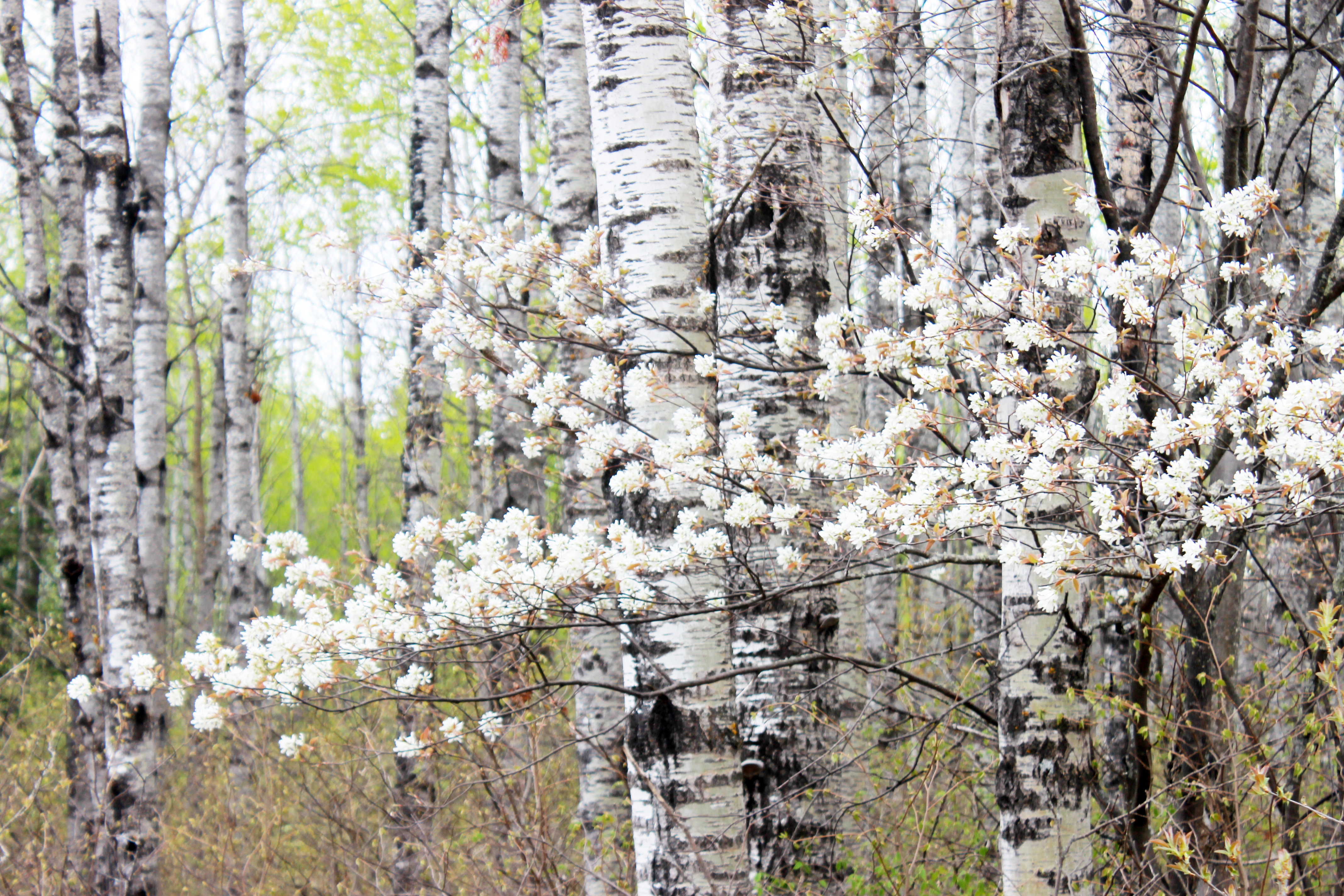IMG_6004 editwhite blossoms / rejoicing hillsI’ve been seeing these little clouds of flowering white trees popping out all over the woods this week, and I’d been planning a hike out to where they’re blooming far across the field near our home—but then I spotted this lovely vignette of white tree trunks and blossoms while I was out driving, just exactly what I was looking for, and I swung in to snap some pictures.  At the dump.