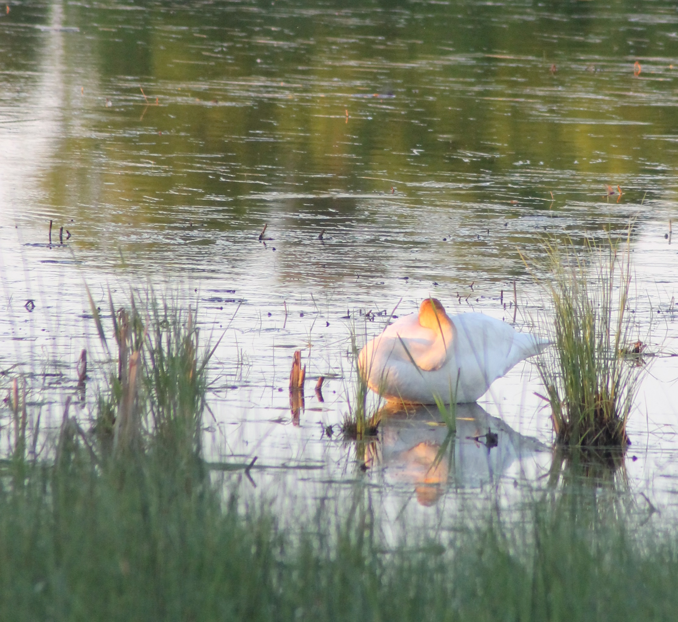 On this eve of Father’s Day, may I introduce you to the fiercely territorial and stunningly handsome patriarch of our small lake? His lovely lady is very capable of expressing herself as well, and they often do so together, the sound of their great wings echoing all over the nearby countryside as they trumpet indignantly at any unwanted visitors to their little realm. But right now, she’s busy with other things.